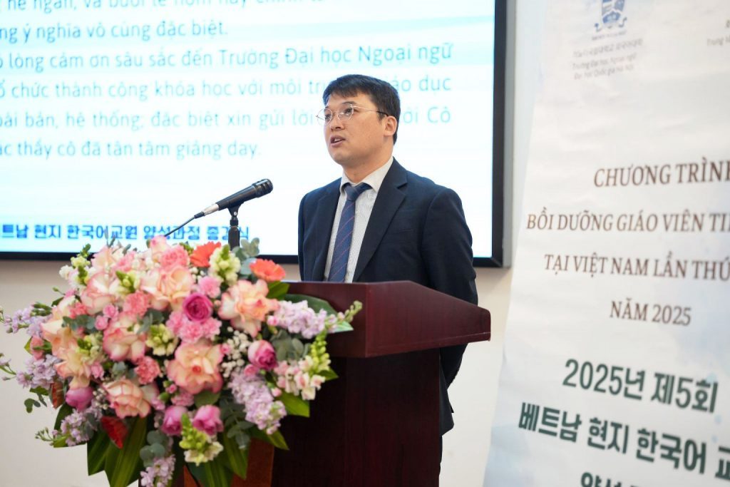 On behalf of the University Leadership, Dr. Hoa Ngoc Son, Vice President of ULIS – VNU, extended his congratulations and commendation to all lecturers and trainees for their active and dedicated efforts in completing the Korean Language Teacher Training Program for both in-service teachers and those aspiring to become Korean language teachers at general education schools in Northern Vietnam. He expressed his belief that the knowledge gained during the program would serve as a solid foundation for the trainees’ professional development and would be effectively applied in their teaching practice at their respective institutions, thereby contributing to the advancement of Korean language education at the general education level in Vietnam.