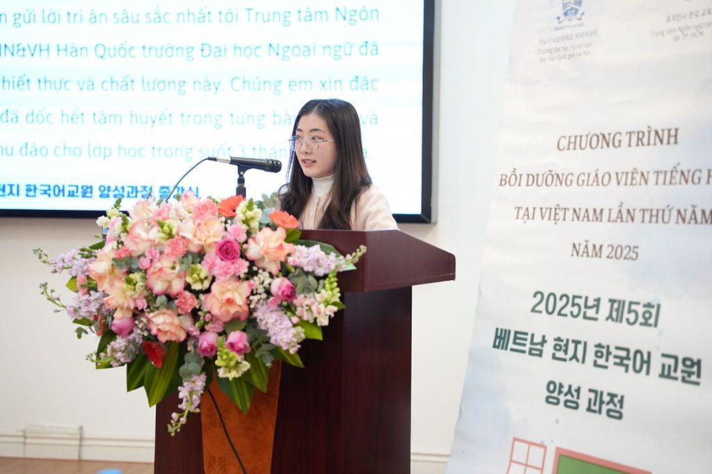 “For the trainees of Cohort 5, I hope that you will continue to make efforts and further develop your professional expertise to make practical contributions to Korean language teaching at general education schools in Hanoi and neighboring areas. At the same time, I hope that you will remain actively engaged in the national network of Korean language teachers, especially the Network of Korean Language Teachers at the General Education Level coordinated by ULIS – VNU, in order to accompany future training programs, professional development activities, and diverse academic initiatives,” Dr. Tran Thi Huong shared.