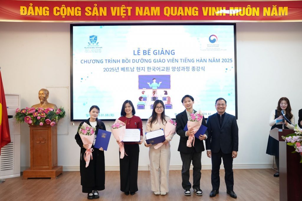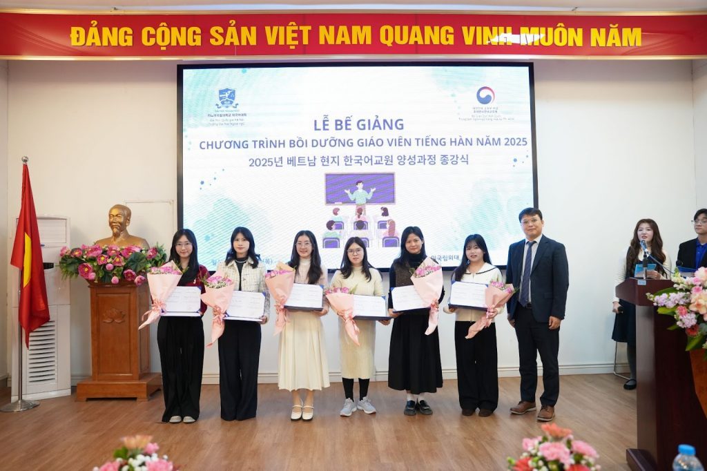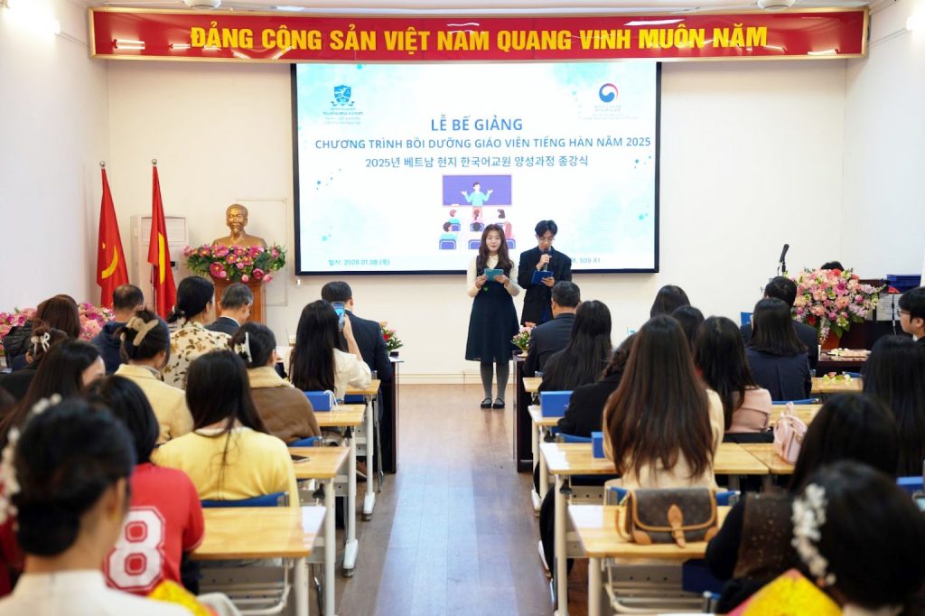 On January 8, 2026, the University of Languages and International Studies – Vietnam National University, Hanoi (ULIS – VNU) held the Closing Ceremony of the 2025 Korean Language Teacher Training Program. The program was jointly implemented by the University and the Korean Language Center in Ho Chi Minh City (an agency under the Ministry of Education of the Republic of Korea in Vietnam).
