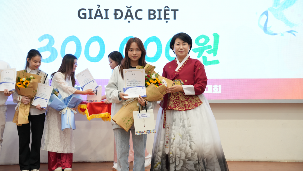 Alongside the competition rounds, the program also featured other exciting activities, such as a lucky draw and musical performances.One of the special highlights of the ceremony was the speeches delivered by two representatives of Vietnamese international students currently living and studying in Gyeongbuk: Mr. Truong Van Son and Mr. Pham Minh Dat. Their sincere sharing regarding daily life, the journey of learning Korean, and their experiences living in South Korea provided the program with a relatable perspective and inspiration for the students.