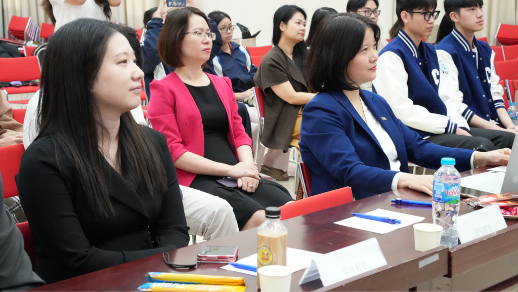 Attending the program from the University of Languages and International Studies were Dr. Tran Thi Huong – Dean of the Faculty of Korean Language and Culture, along with representatives of the Faculty’s staff, lecturers, and students, as well as the contestants and interested audience members.