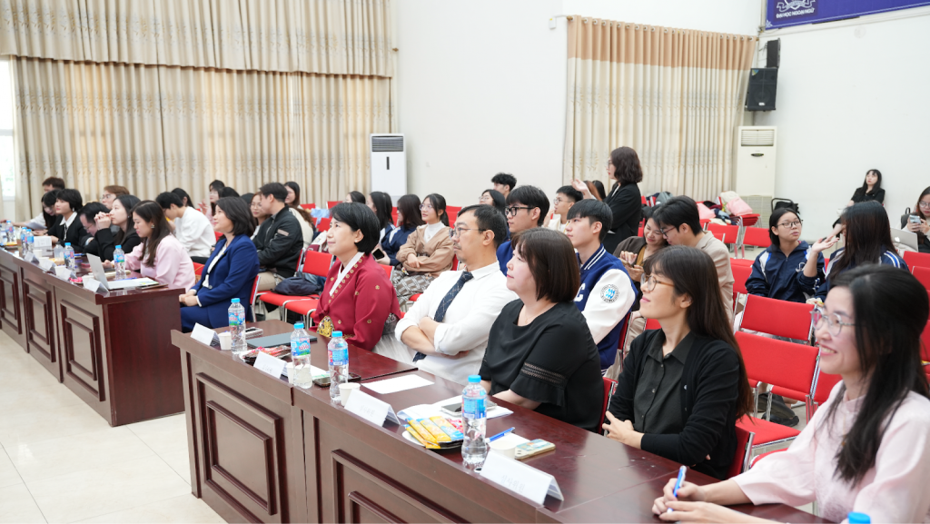 Representing the partners and guests, the event was honored to welcome Ms. Kim Yang Hee – Director of Gyeongbuk Hakdang, lecturers from the Department of International Korean Language at Catholic Sangji College, along with Deans and Vice Deans of Korean language faculties from various universities, colleges, and high schools in the region, including Nguyen Trai University, Hanoi Polytechnic College, Hanoi University, and Phuong Dong University.