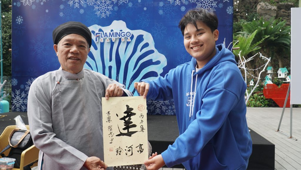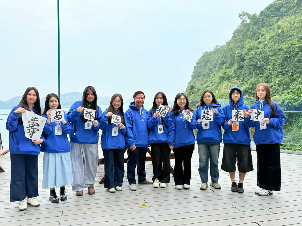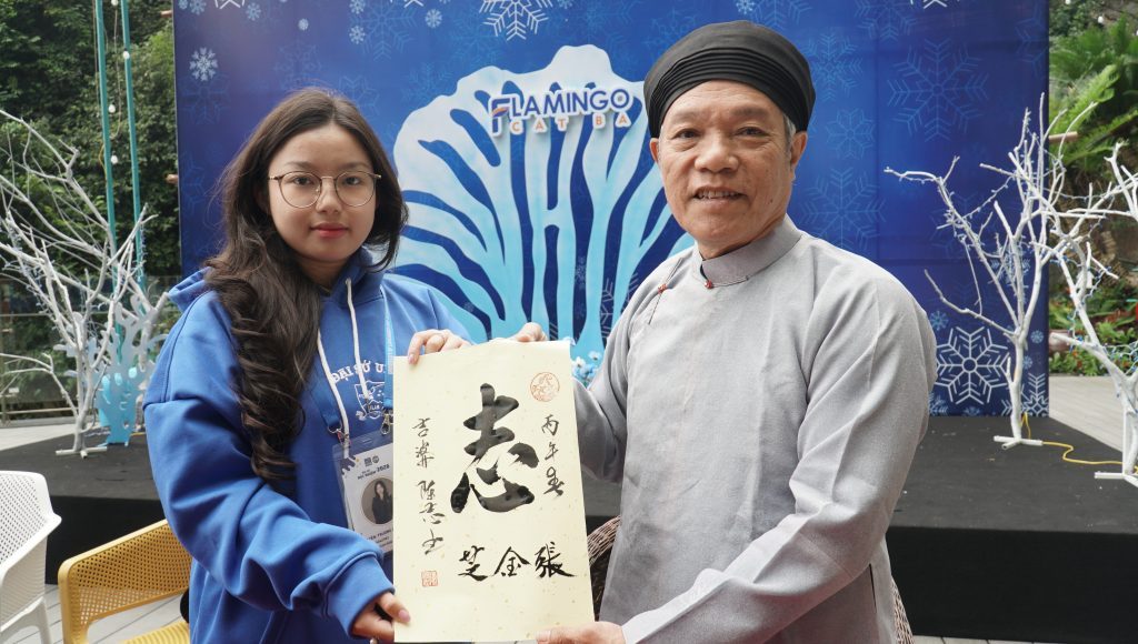 Additionally, there was a cultural exchange activity with the participation of calligrapher Tran Quoc Chi, Chair of the UNESCO Hanoi Calligraphy Club, who directly wrote and presented meaningful calligraphy works to faculty and student ambassadors. This activity not only carried rich traditional cultural values in early spring but also helped create a reflective and bonding space for members to share good wishes, adding motivation and positive spirit for the journey of study and contribution in the new year.