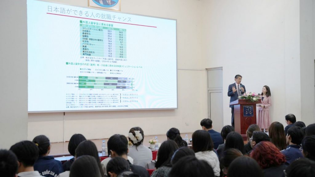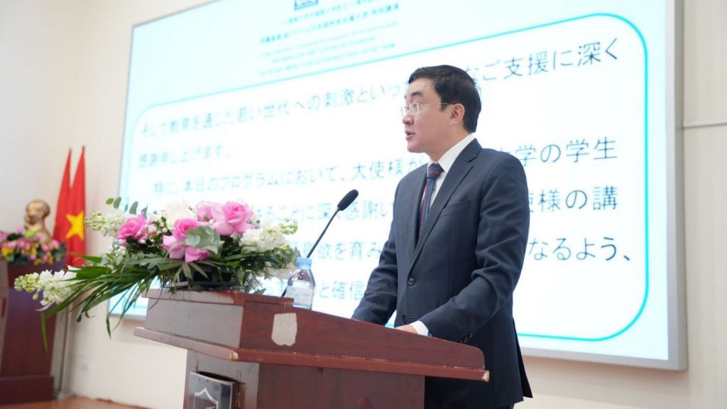 At the event, Ambassador Ito Naoki delivered a special lecture on Vietnam–Japan relations, student exchange and educational cooperation between the two countries, strategic relations, and multilateral cooperation. From these perspectives, he highlighted future career prospects for young people in general and for ULIS students and pupils in particular. The Ambassador also shared insights into the skills and qualifications required to meet the demands of rapidly developing professions in Japan, as well as examples of Vietnamese international students who have achieved success in their career paths. Concluding his lecture, Ambassador Ito Naoki reaffirmed that Vietnamese tourists, human resources, and talented young people play an important role in Japan’s development, and expressed his hope to further spread love and passion for Japan among Vietnamese youth, students, and pupils.