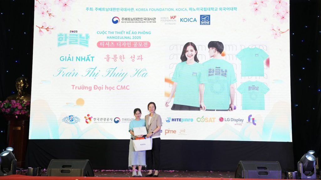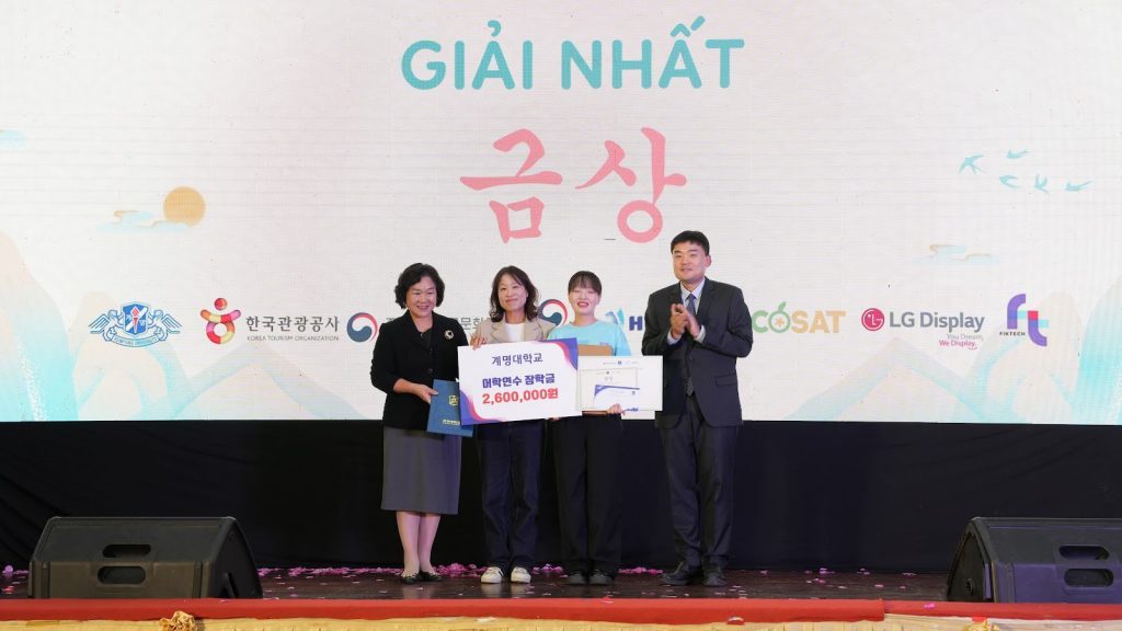 At the end of the competitions, the Organizing Committee presented awards to the outstanding contestants and teams. The First Prize in the Korea Quiz was awarded to Nguyen Thi Thanh Mai from the ULIS – VNU; the First Prize in the T-shirt Decoration Contest went to Tran Thi Thuy Ha from CMC University; the First Prize in the Tent Decoration Contest was granted to the University of Languages and International Studies – VNU; and the First Prize in the Talent Competition was awarded to the University of Social Sciences and Humanities – VNU. These awards served as a well-deserved recognition of the contestants/ teams efforts and enthusiastic participation.