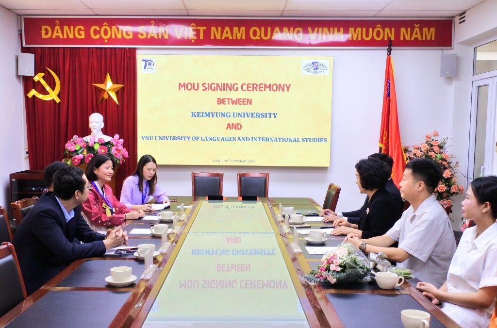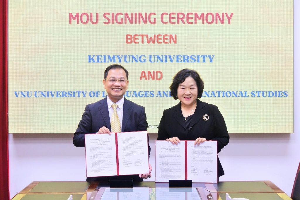 On October 19, 2025, the University of Languages and International Studies – Vietnam National University, Hanoi (ULIS – VNU) held a ceremony to sign a cooperation agreement with Keimyung University on implementing a short-term summer semester program for students of the Faculty of Korean Language & Culture. The event marks the beginning of a new collaborative program between the two institutions.