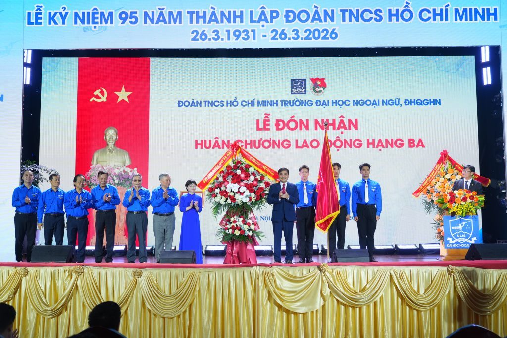 On March 29, 2026, at Nguyen Van Dao Hall, the University of Languages and International Studies – VNU, Hanoi (ULIS-VNU) solemnly held a ceremony to celebrate the 95th anniversary of the Ho Chi Minh Communist Youth Union (March 26, 1931 – March 26, 2026) and to receive the Third-class Labor Order.